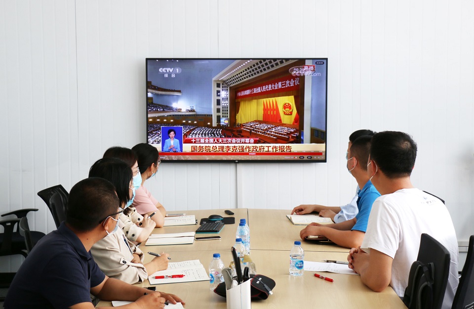 5月22日上午9时,十三届全国人大三次会议在人民大会堂开幕。未蓝公司组织各部门主管和党员观看李克强总理作政府工作报告实况直播。