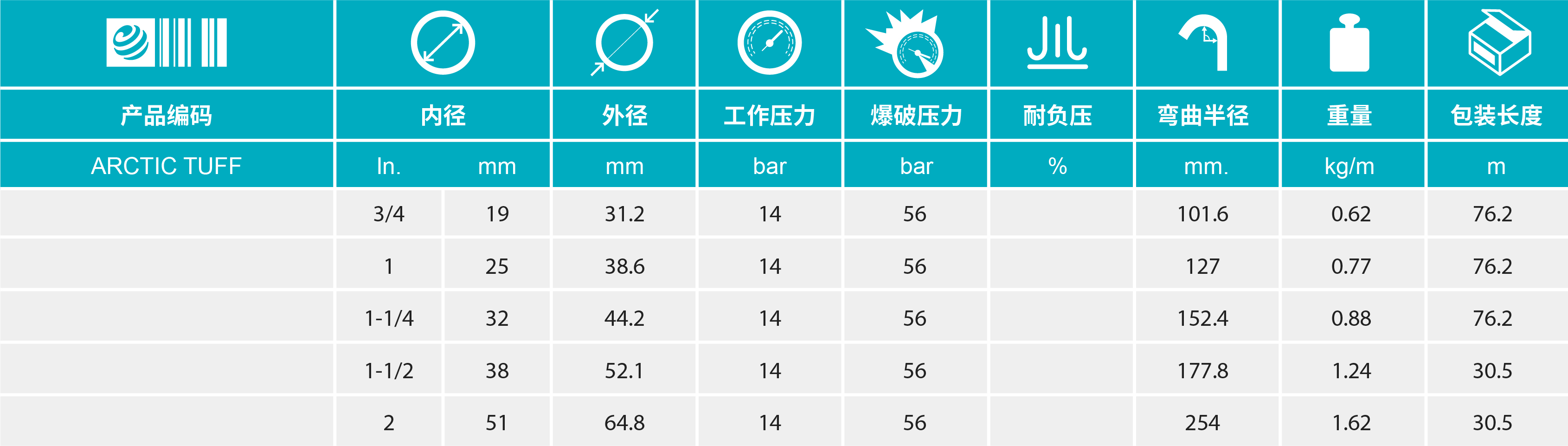 - 内胶层:挤出光滑的优质NBR合成橡胶,具有耐极低温的设计