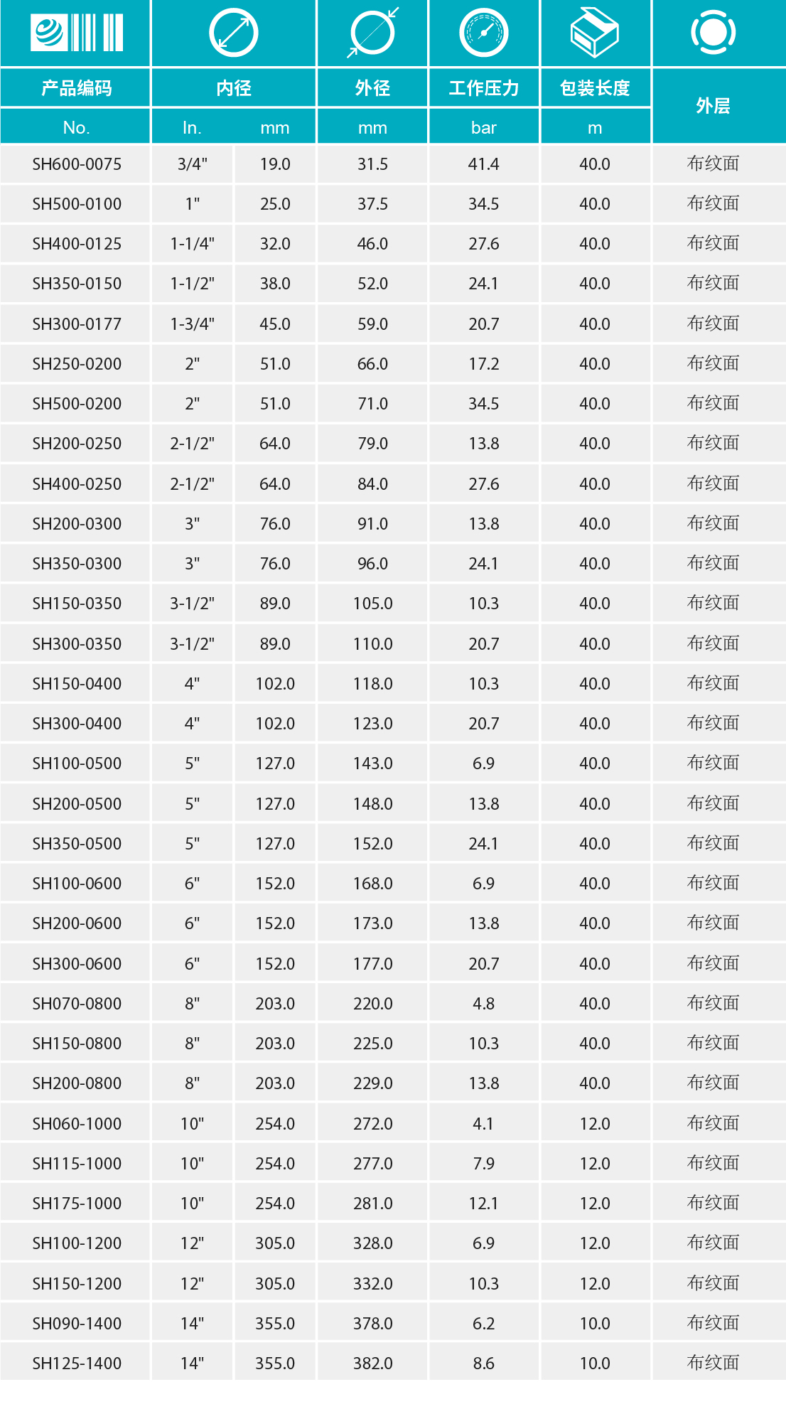 【外层】SBR合成橡胶,黑色,高耐磨及具有优良耐老化性能,表面布纹