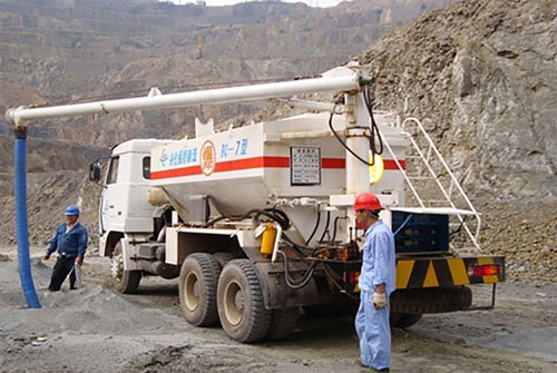 混装车全名“现场混装炸药车”,是一种能将乳化炸药原料分仓储运并在爆破现场混制装填的多功能车辆,在矿山、冶金、建材等行业有广泛应用。输药管正是用于将乳化炸药从螺杆泵输送到炮孔的连接软管。