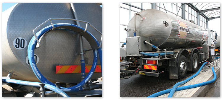 针对牧场内奶罐车收奶,工厂卸奶的现场工况,考虑到经常发生车辆压瘪收奶管的情况,我们为您贴心推荐防车轧软管方案,其特殊构造使其拥有极高的回弹性,能有效防止软管因车辆碾压到导致的变形、开裂、流量变小等情况。满足食品级认证。