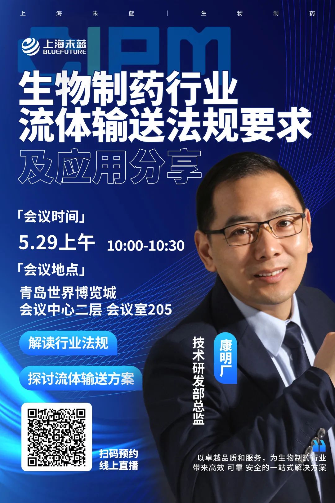 上海未蓝应用技术部研发总监康明厂将应邀参与第62届CIPM生物制药论坛,并将围绕“生物制药行业的流体输送法规要求”展开深入探讨及分享,助力我国生物制药行业的高质量发展。