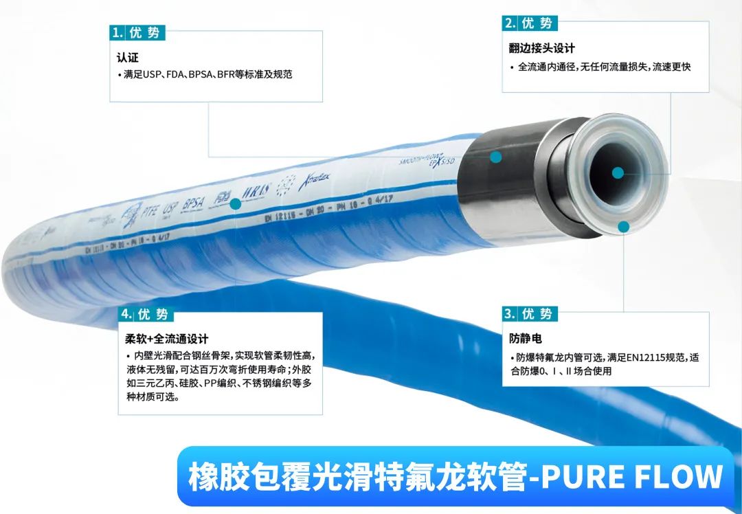 特氟龙管可将PTFE翻边于接头密封面,防止物料对PTFE以外物质的腐蚀风险。