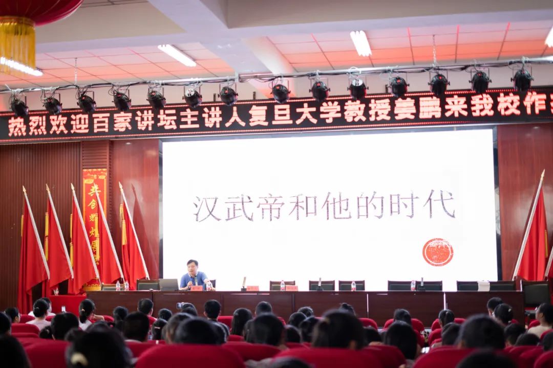 姜老师以《何为中国》和《汉武帝和他的时代》为主题,以幽默风趣的讲授方式引起了学生们对历史的兴趣。提问环节中,学生们积极参与互动问答,效果极佳。此次名师公益讲堂点燃了学生们对历史的热爱和思考的火花,引领他们积极思考,探索历史的奥秘。