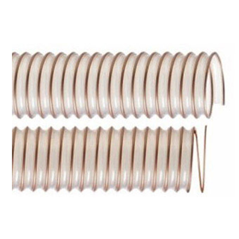 - 半透明PU管壁, 带镀铜色包塑钢丝螺旋加强