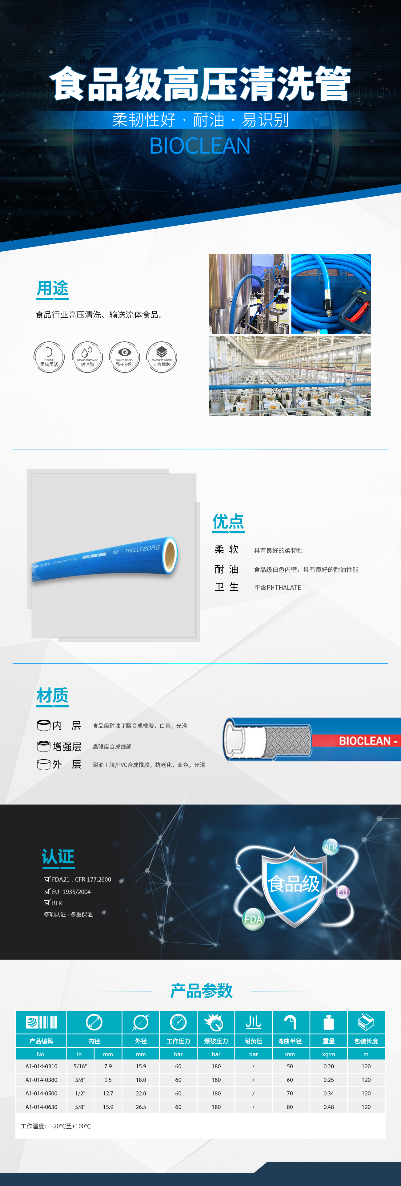 适用于食品行业高压清洗工作场合,也可用于输送流体食品介质。