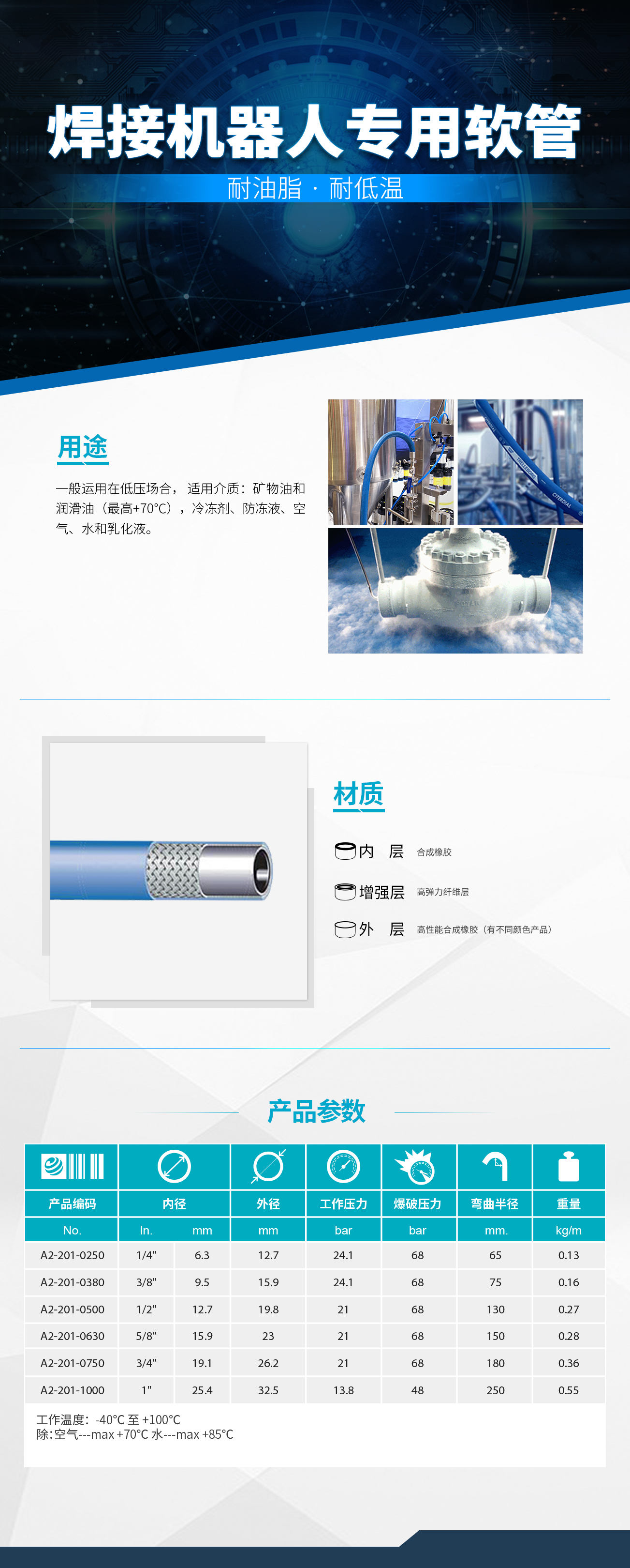 适用介质:矿物油和润滑油(+70℃),冷冻剂、防冻液、空气、水和乳化液。