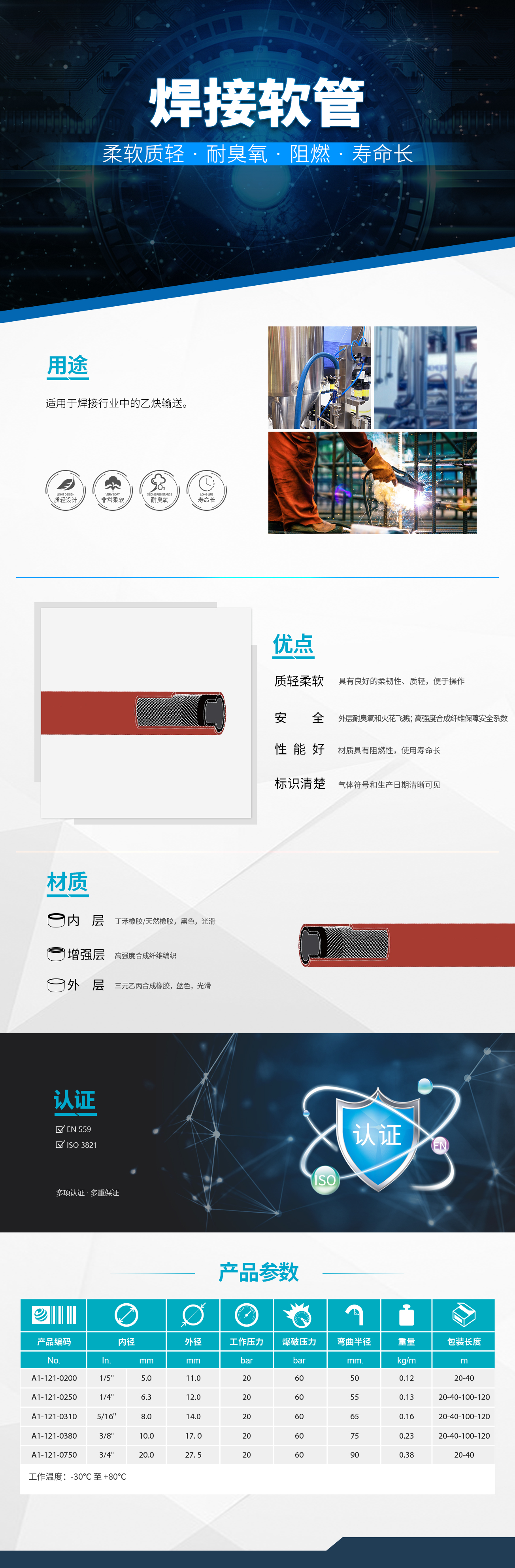 外胶耐臭氧和火花飞溅,材质具有阻燃特性