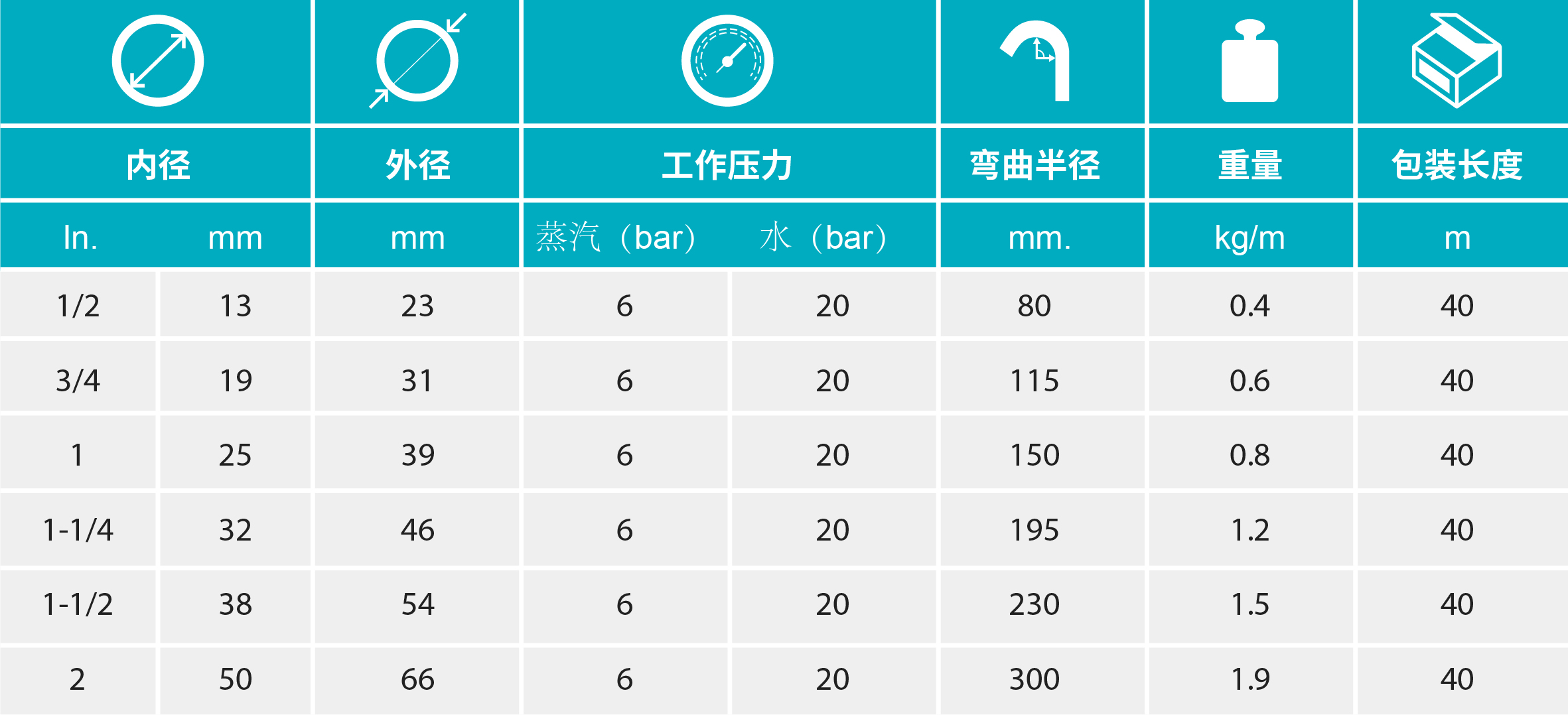 可靠安全的perlapal热水及蒸汽软管有白色和褐色两种不同内层结构。适用于食品、制药、化妆品行业清洗应用,两种软管都可输送+95℃热水及蒸汽,蒸汽温度可达164℃(仅限于开式系统)。
