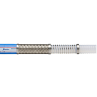 【特性】标准与防静电内衬可供选择 里层为光滑的PTFE 软管,外覆SS304 不锈钢编织和蓝色三元乙丙橡胶保护层 柔软,易清洗,易排水,表面光滑易擦洗 里层及表层均符合FDA 和USP 认证