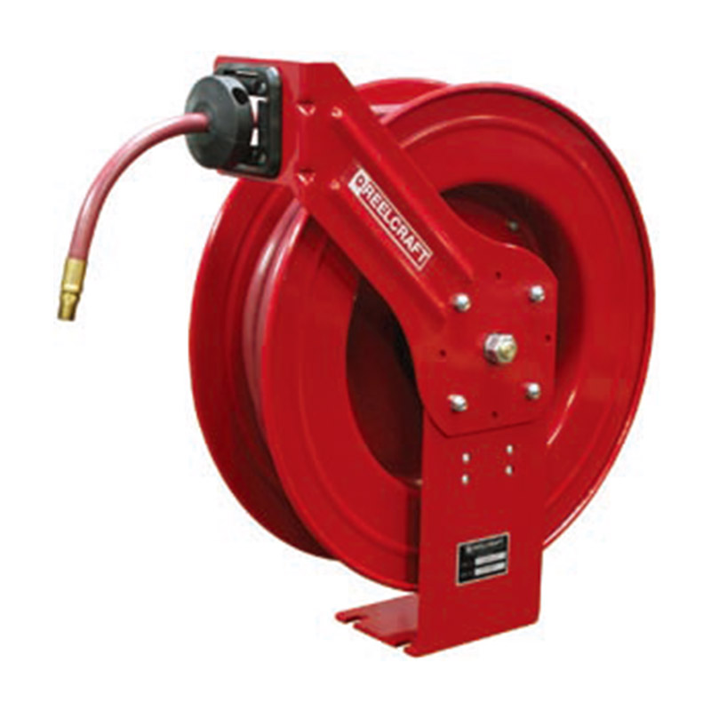 锐技LC系列卷轴是轻型的弹簧驱动卷轴,广泛用于室内外可钻孔固定的平面上。该卷轴设计精良,经久耐用,是高要求应用场合的理想选择。卷轴基座和带有加强筋的支架由高品质加厚碳钢冲压成型,结构坚固,标准低压软管仅适合输送压缩空气和水。导向架可以根据需要调整8个不同方向。