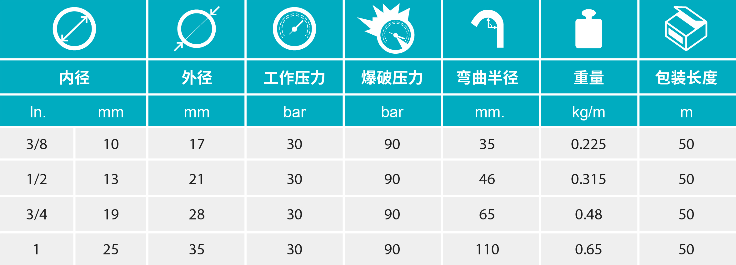 该软管是一款高品质高压输水软管。工作压力可达30bar,使得该软管不仅适合高压输送冷却水,而且也适合输送粉末,工业清洗,建筑,农业及车间内输送等。