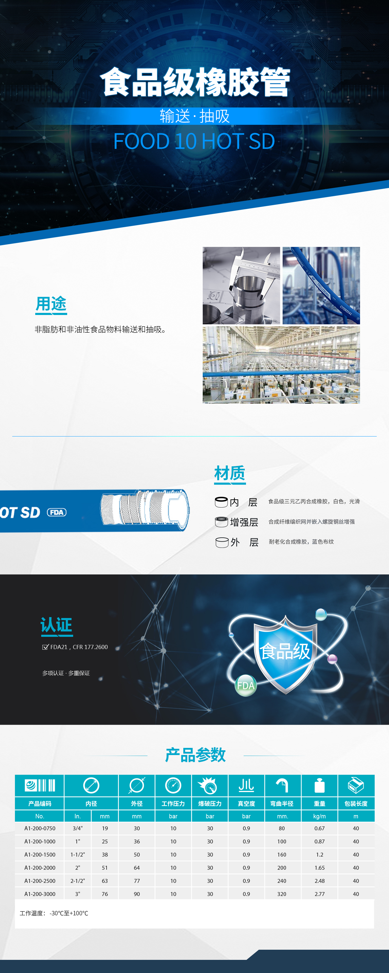 食品级EDPM橡胶管 FOOD 10 HOT SD