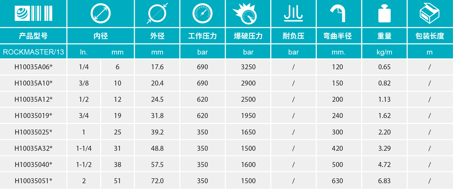- 【增强层】:4层高抗拉钢丝缠绕(DN6-31) 6层高抗拉钢丝缠绕(DN38-51)