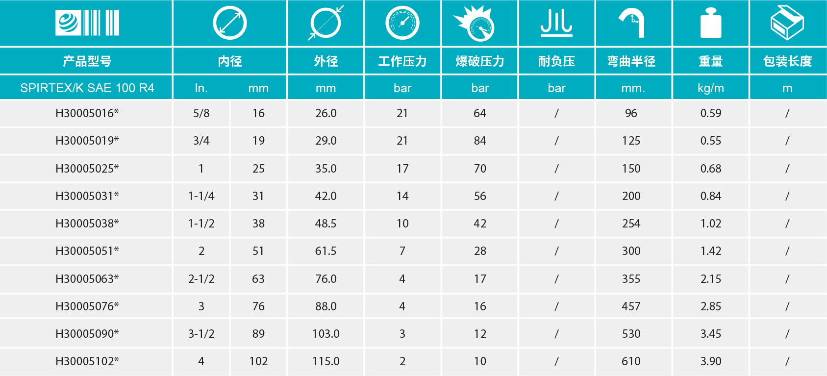 耐真空 新型紧凑SAE 100 R4标准结构 通用管,外层耐磨