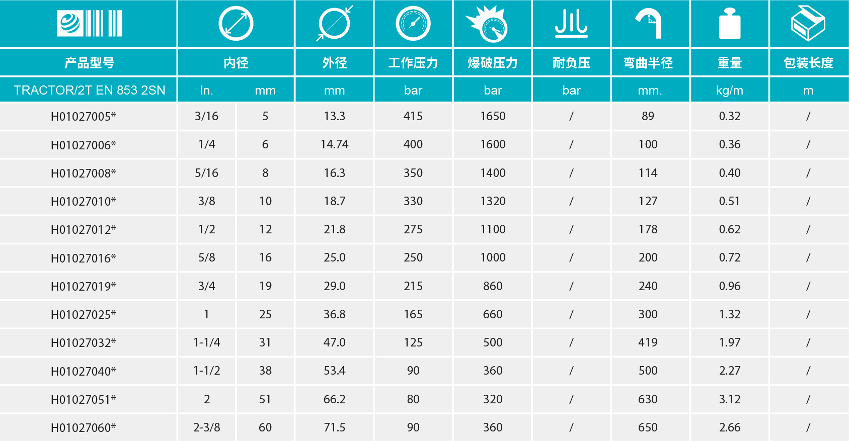 • 【应用标准】EN 853 2SN - SAE 100 R2AT - ISO 1436-1 2SN/R2AT