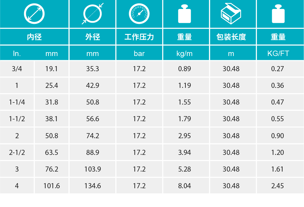 【增强层】内径1-1/2”,多层螺旋缠绕的合成纤维,缠绕4层;内径超过1-1/2”,以下缠绕6层