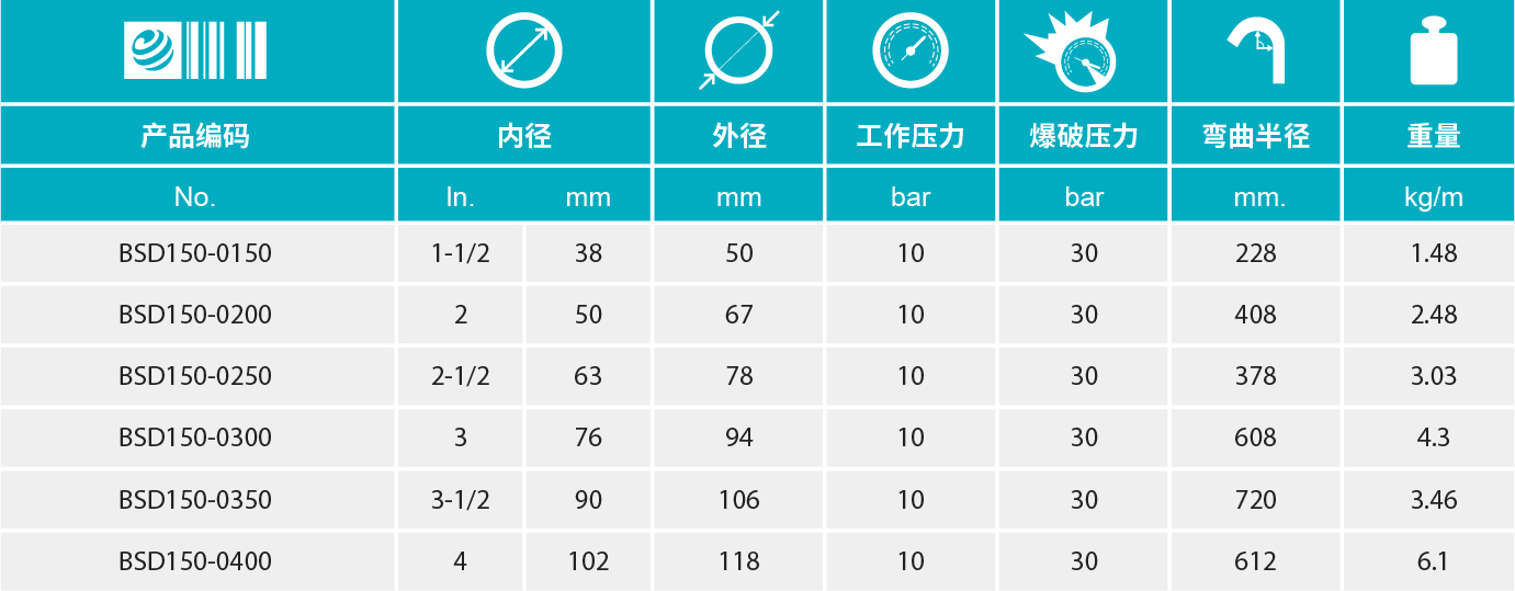 【字样】SUNFLEX BSD 150 FOOD BEVERAGE SUCTION/DELIVERY HOSE WPSI 150
