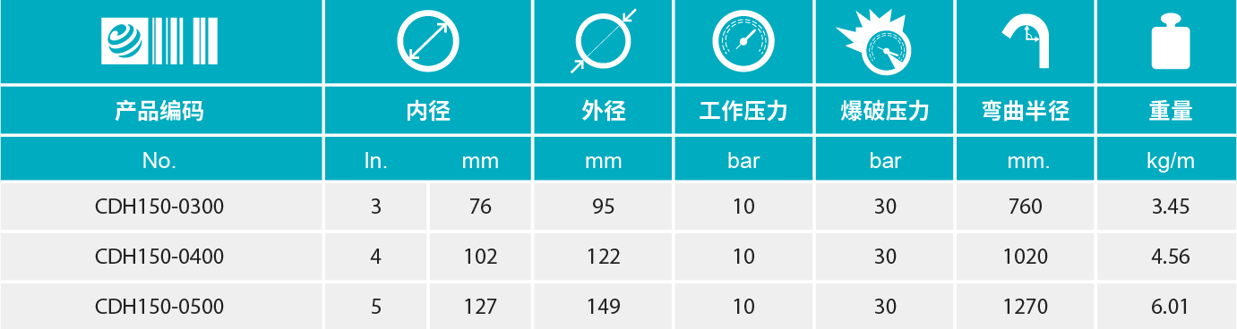 【字样】SUNFLEX CDH 150 BULK MATERIAL DELIVERY HOSE WPSI 150
