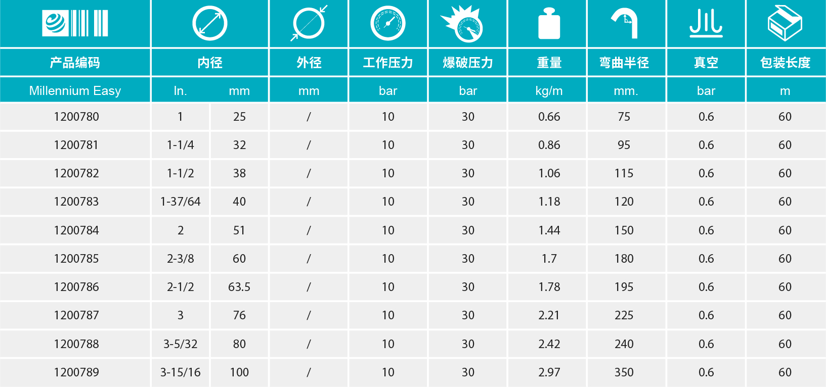 - 波纹硬壁胶管,适用于吸入和输送各类食品,如橄榄油,葡萄酒,啤酒,果汁,高脂肪的食物,牛奶和高达96°的酒精类。
