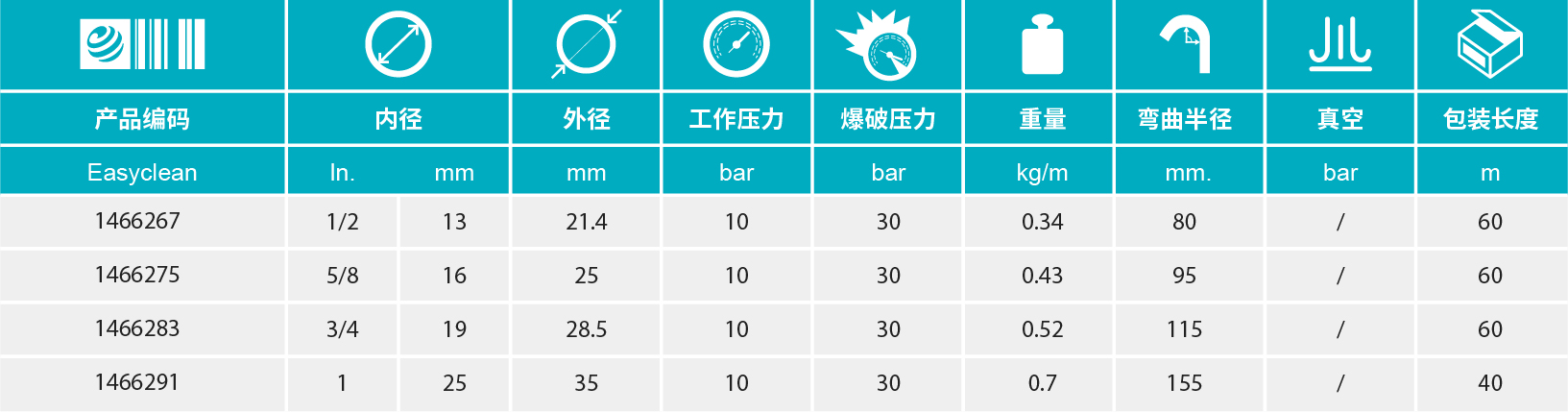 挤出型软壁胶管,食品级认证,用于食品行业输送高温清 洗热水,适用于在乳品厂,罐头厂,屠宰场,所有食品加工等行业卫生型操作。耐脂肪类。耐臭氧,耐老化。