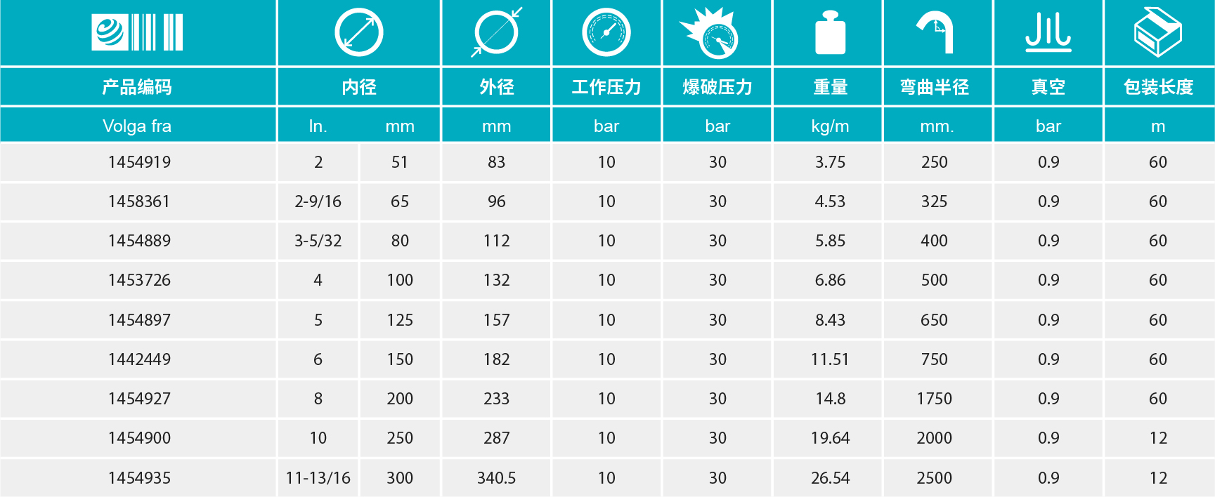 • 【外层】黑色,波纹状(表面布纹),EPDM 橡胶,抗老化,耐臭氧