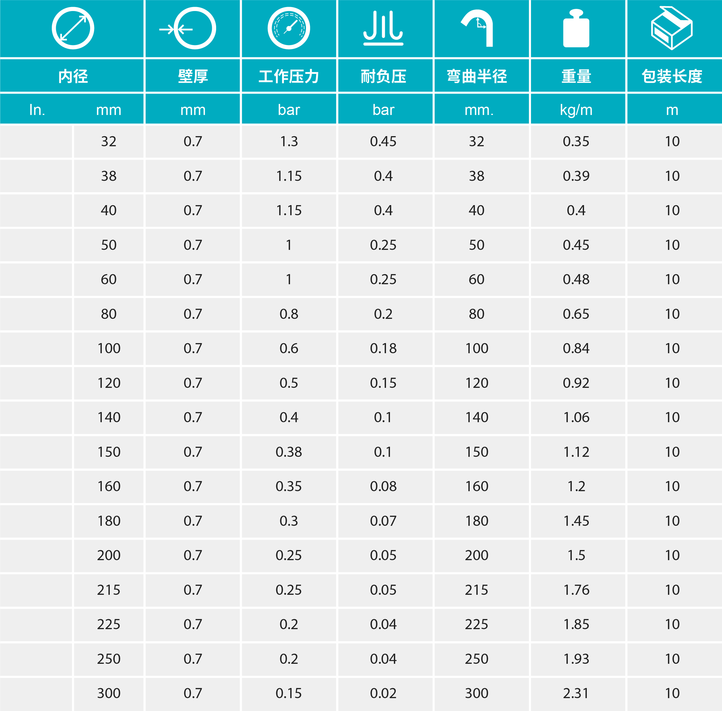 内壁非常平滑以保证物料在管内流动顺畅,具有良好的柔韧性
