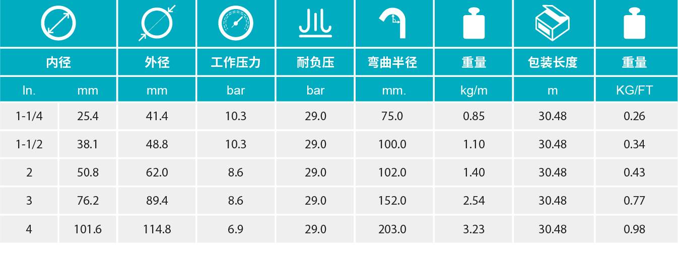【增强层】多层螺旋缠绕的合成纤维,带有两条金属螺旋丝加强