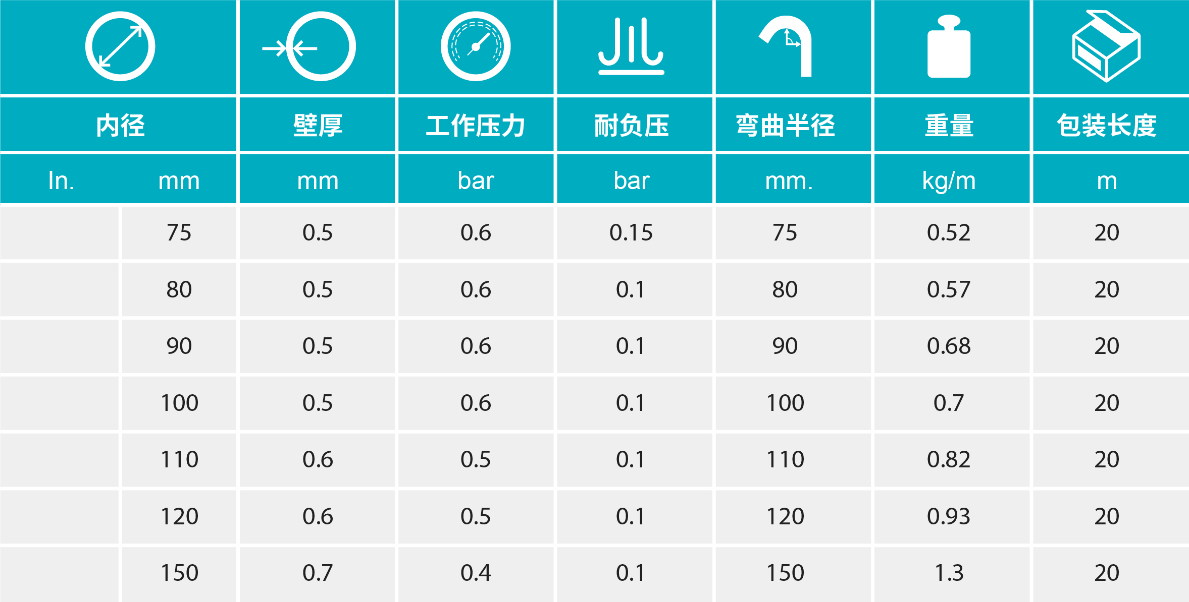 质极轻且具有良好的柔韧性,内壁平滑以保证物料在管内流动顺畅