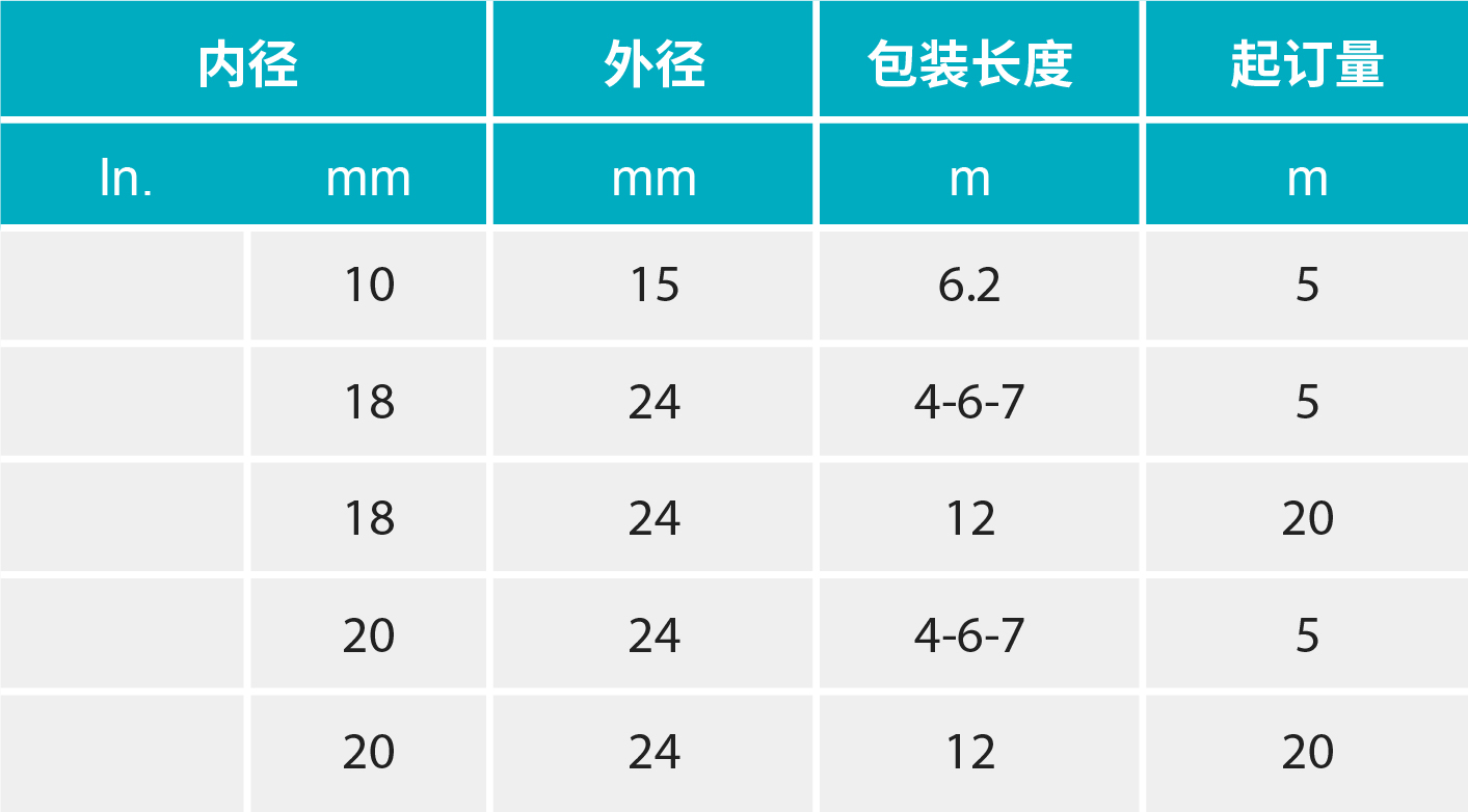 用于食品和医药行业中液体、气体的输送,及气动系统中的压缩气体。也可用于输送牛奶、20%浓度的酒精(长时间)及短时间50%浓度的酒精(最长为2小时)。还可用于建筑行业和工业系统中水的输送