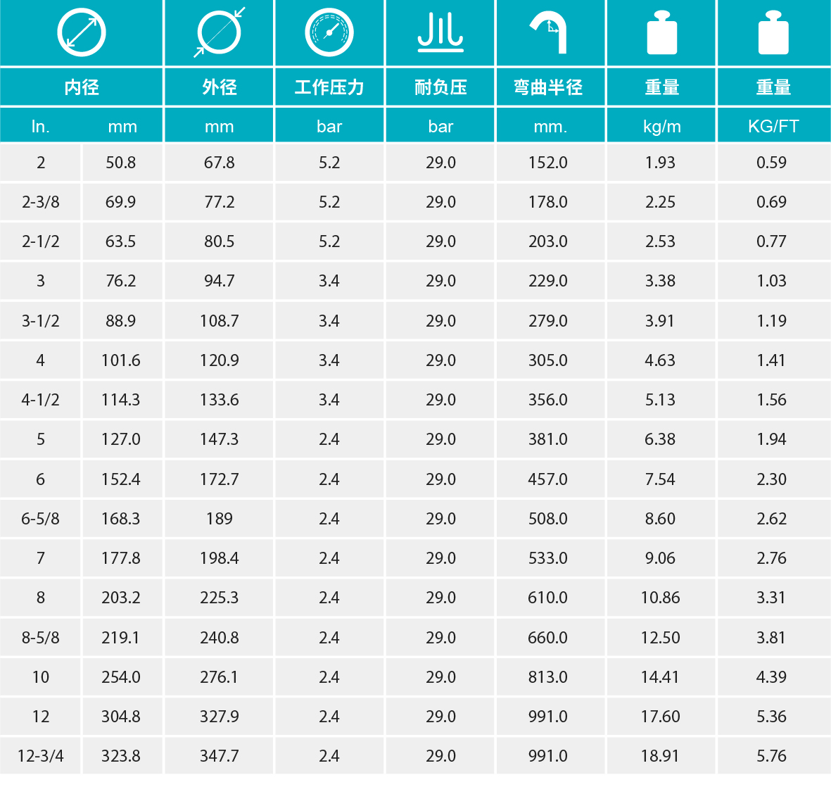 【增强层】多层螺旋缠绕的合成纤维,带有两条金属螺旋丝