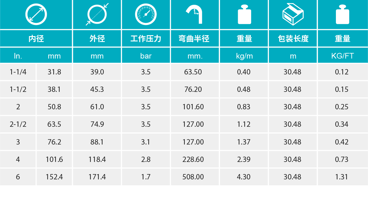 中等负荷,轻质构造,在寒冷环境下仍然保持柔韧性。光滑的管内层,使输送物质发生积塞得可能降小,而且对农业和清洁行业的多种化学品具有耐性。略微呈波状起伏的外部螺旋状保护层,加强了本品表层的抗磨损性,降低了摩擦系数,且便于安装。本品通常的应用领域包括废品处理、建筑、农业、海上作业和制造业。
