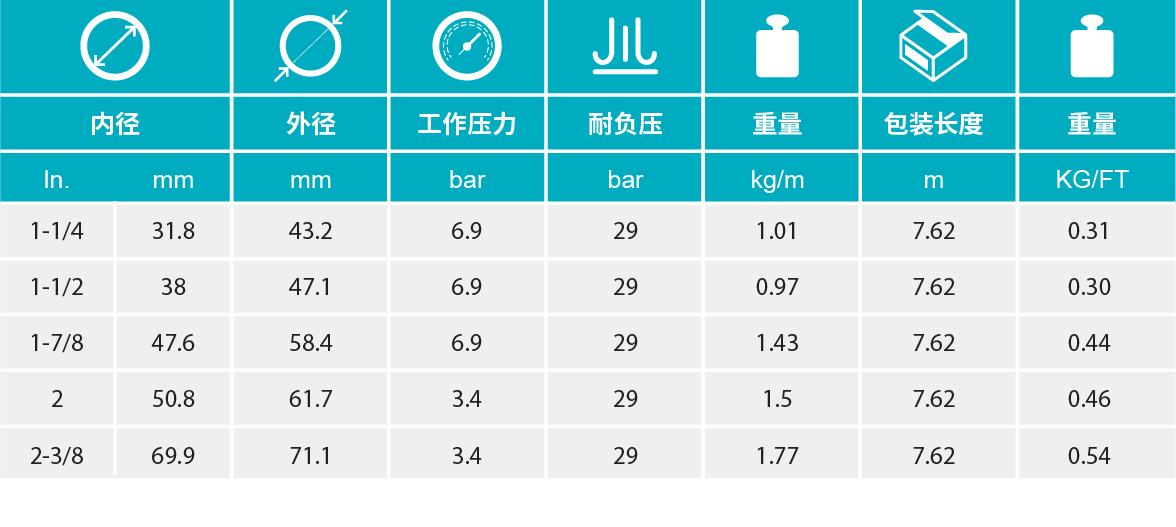 【增强层】多层缠绕合成纤维,带金属丝螺旋