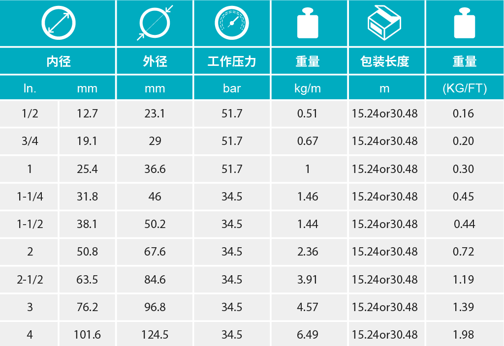 【增强层】编织钢丝(1层)(1/2" - 1?"),多层钢丝缠绕(2" - 4")