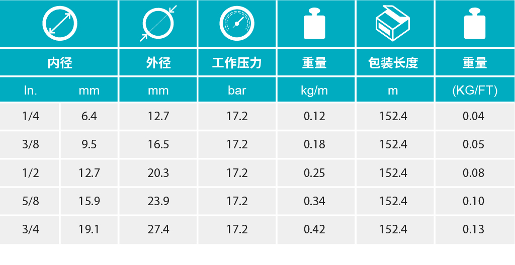 • 用于低液压和气动用于带有推进式接头压力位250psi场所,适用于工业,维修业等。该管不导电,在1000伏直流电压下,每英寸的min电阻要高于1兆欧姆。