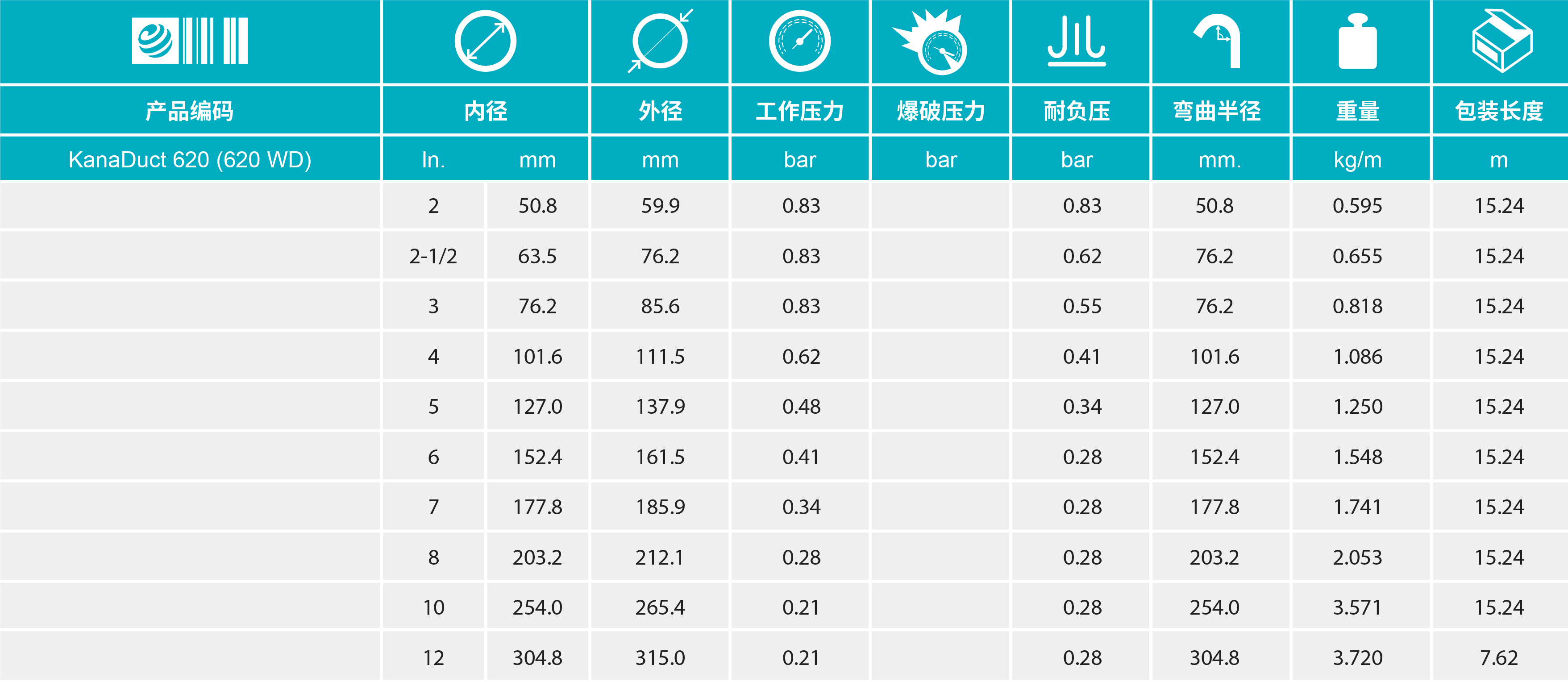 通用金属丝螺旋通风管 KanaDuct 620 (620 WD)