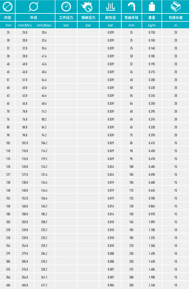 所有口径很定壁厚0.4mm。优异的耐磨性、弯曲性,耐微生物、耐水解等性能