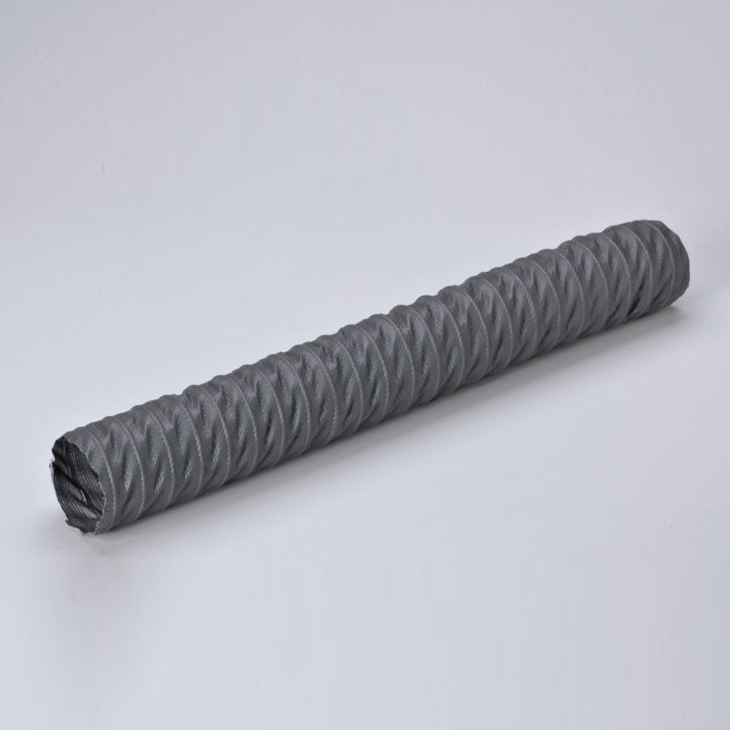 柔韧灰色软管,聚酯织物覆阻燃PU涂层,夹层之间焊接钢螺旋加强