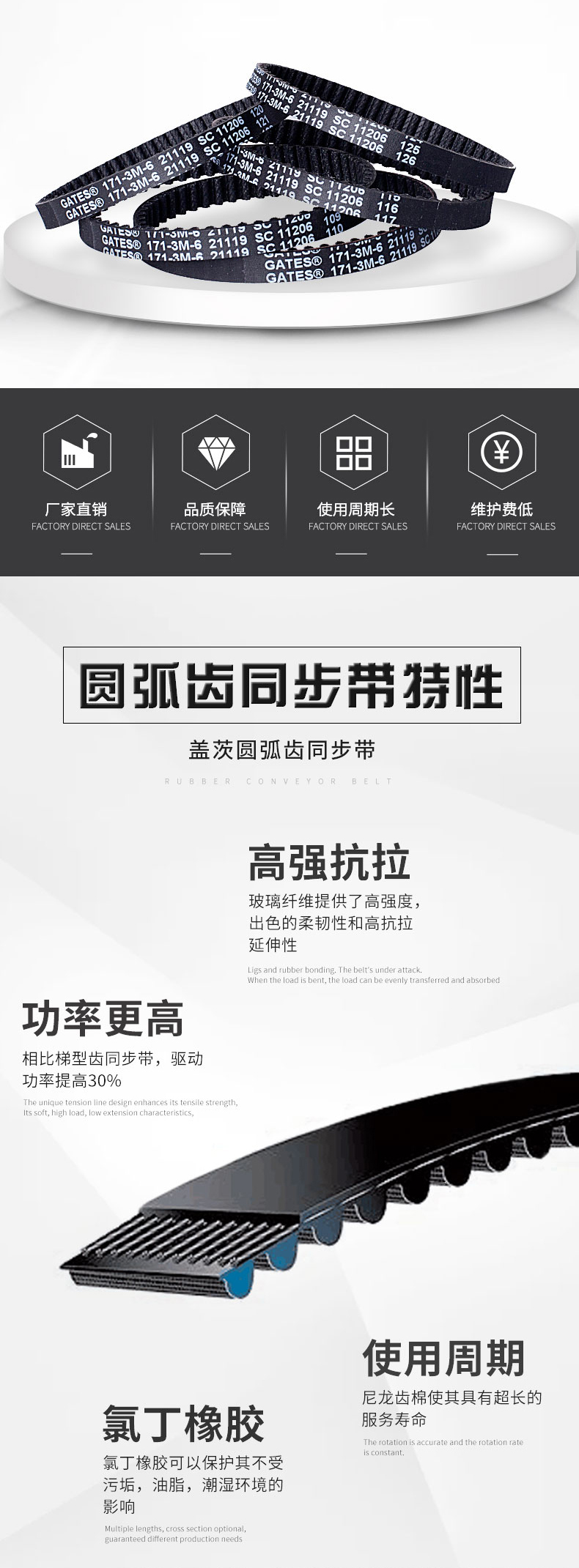 圆弧齿同步带 PowerGrip HTD 橡胶传动带 工业皮带 3M-531