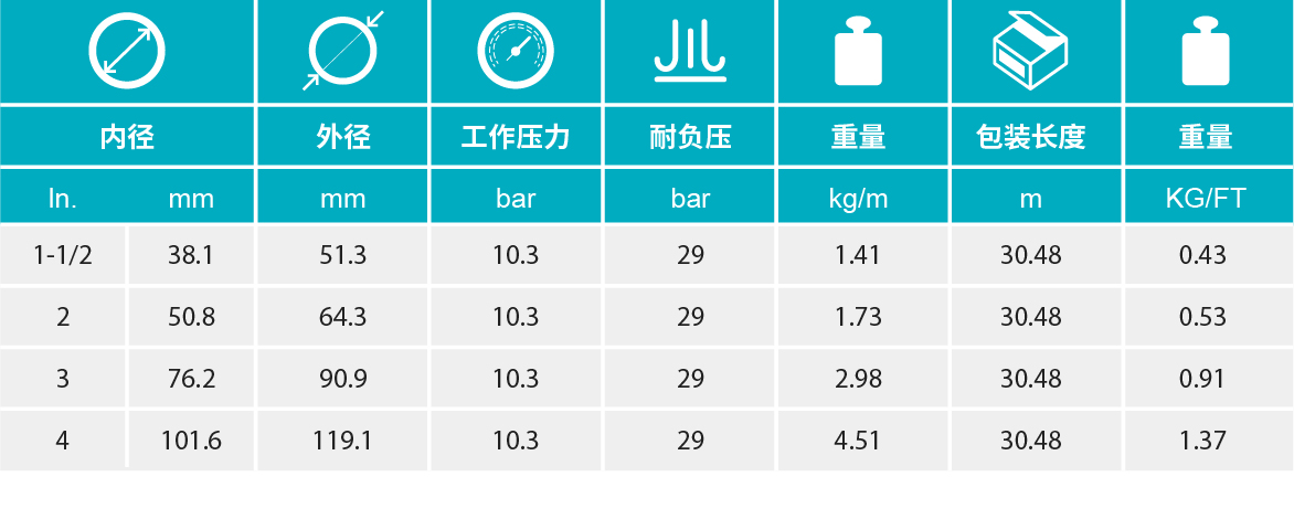 【增强层】多层缠绕合成纤维,带有2条金属螺旋丝