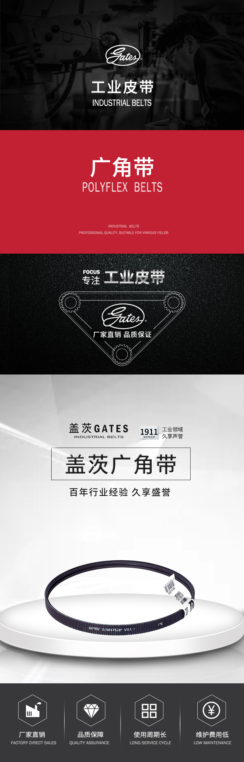 Gates5M联组广角带 聚氨酯联组广角带 2/5M1280JB