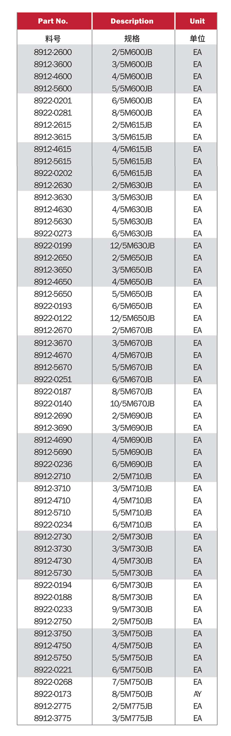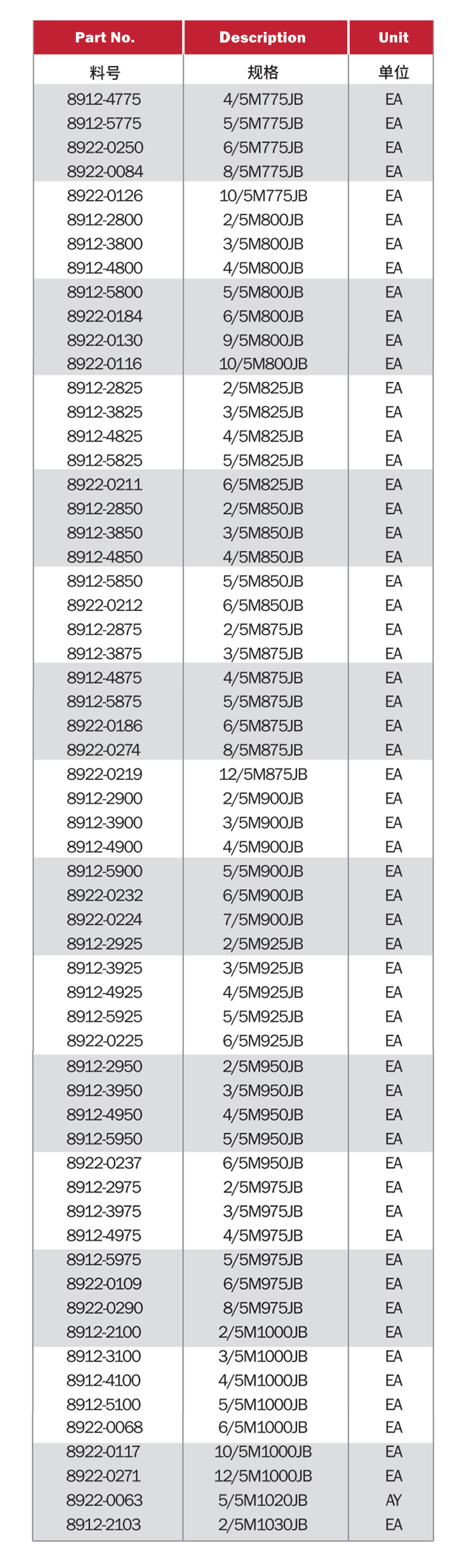 联组广角带 聚氨酯联组广角带 2/5M1280JB