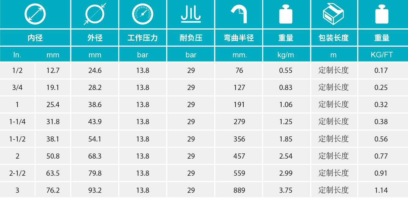 有特氟龙内衬的高级软管,用于各种液体及材料,适用范围很广。