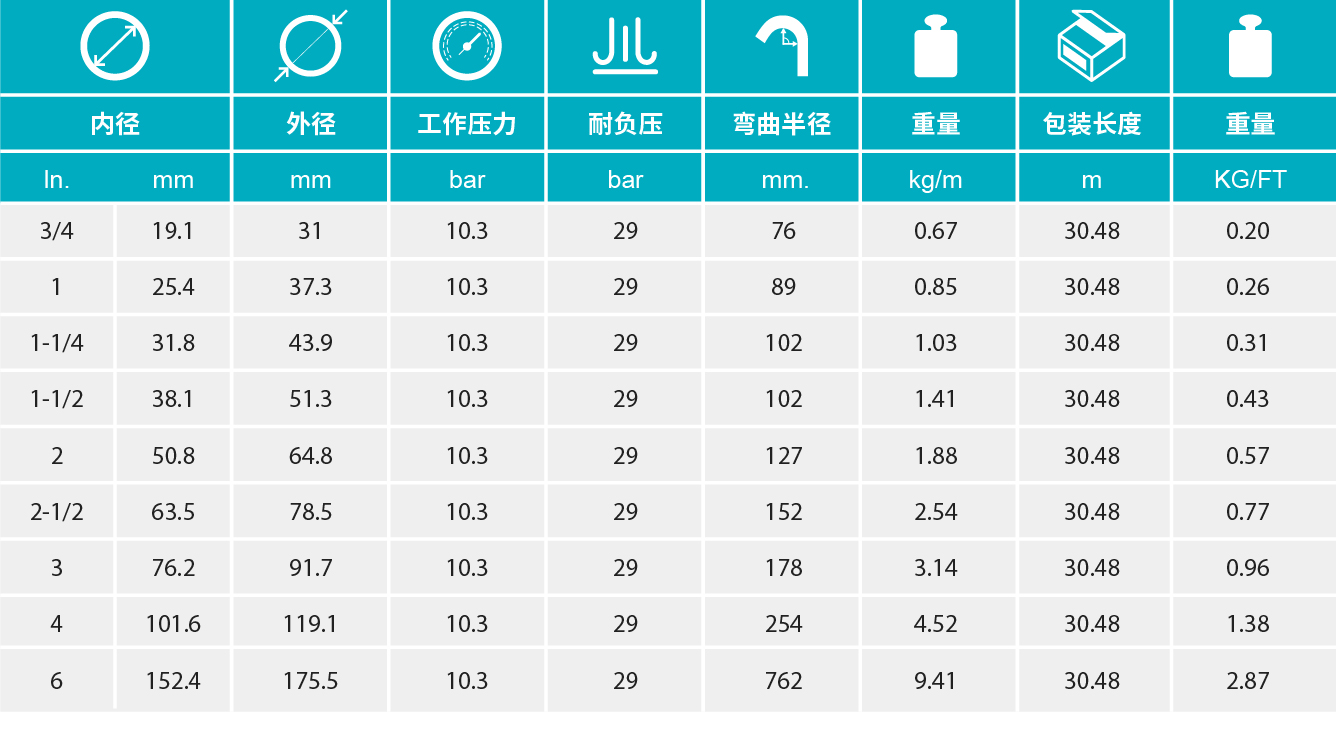 【增强层】多层螺旋缠绕的合成纤维,带有两条螺旋丝金属