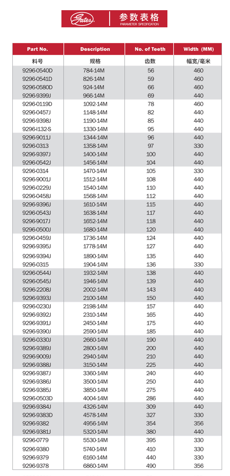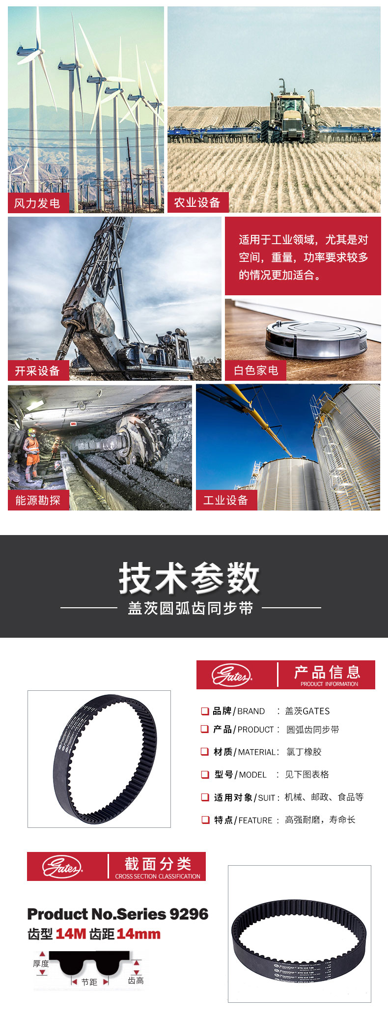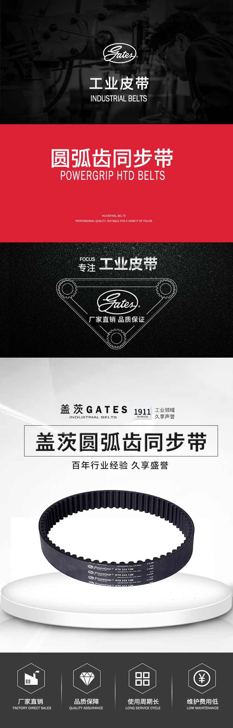 盖茨圆弧齿同步带 PowerGrip HTD 橡胶传动带 工业皮带 966-14M