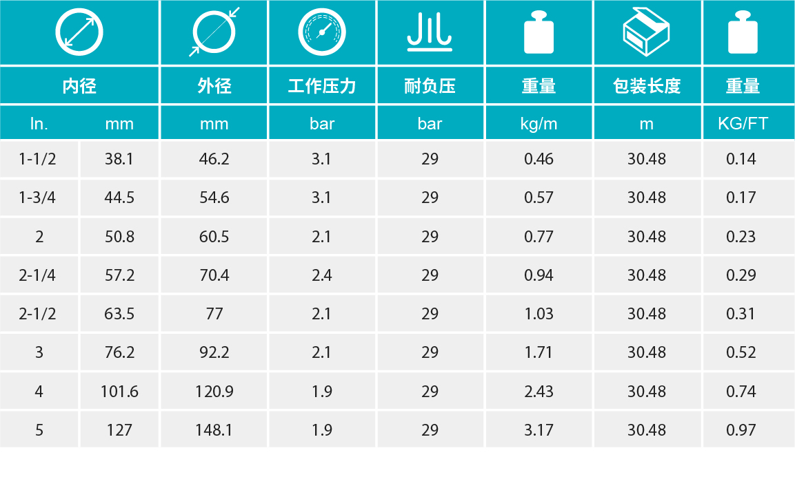 【增强层】高密度硬质Pliovic聚乙烯(PVC)螺旋缠绕,内外层之间置有导电丝