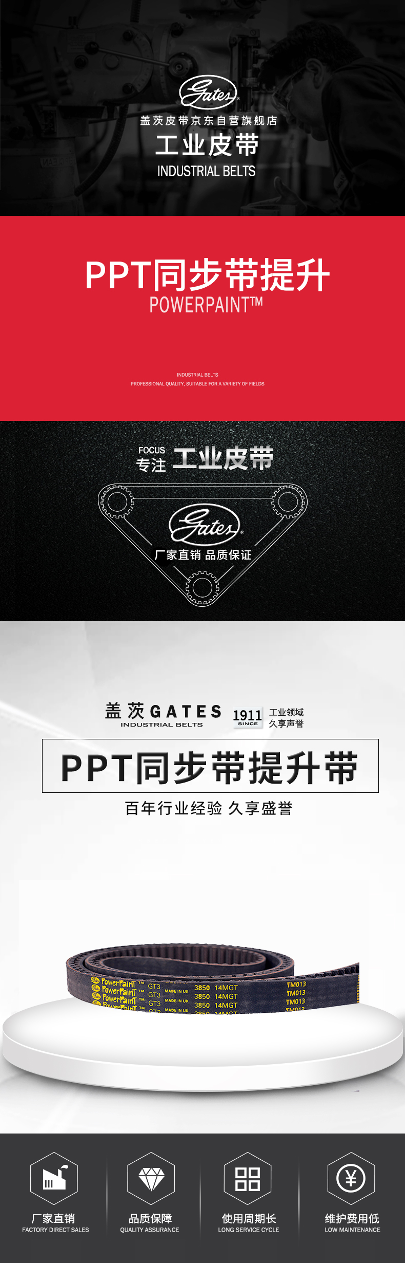 盖茨GATES同步带提升带PowerPaint橡胶传动带PPT GT3 3500 14MGT