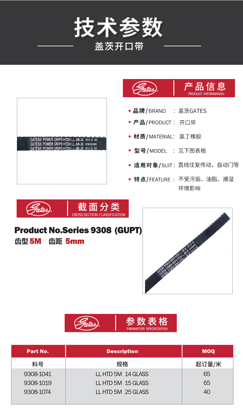 盖茨开口带LL HTD 5M(15-25) GATES开口带LL HTD-5M-25 GLASS