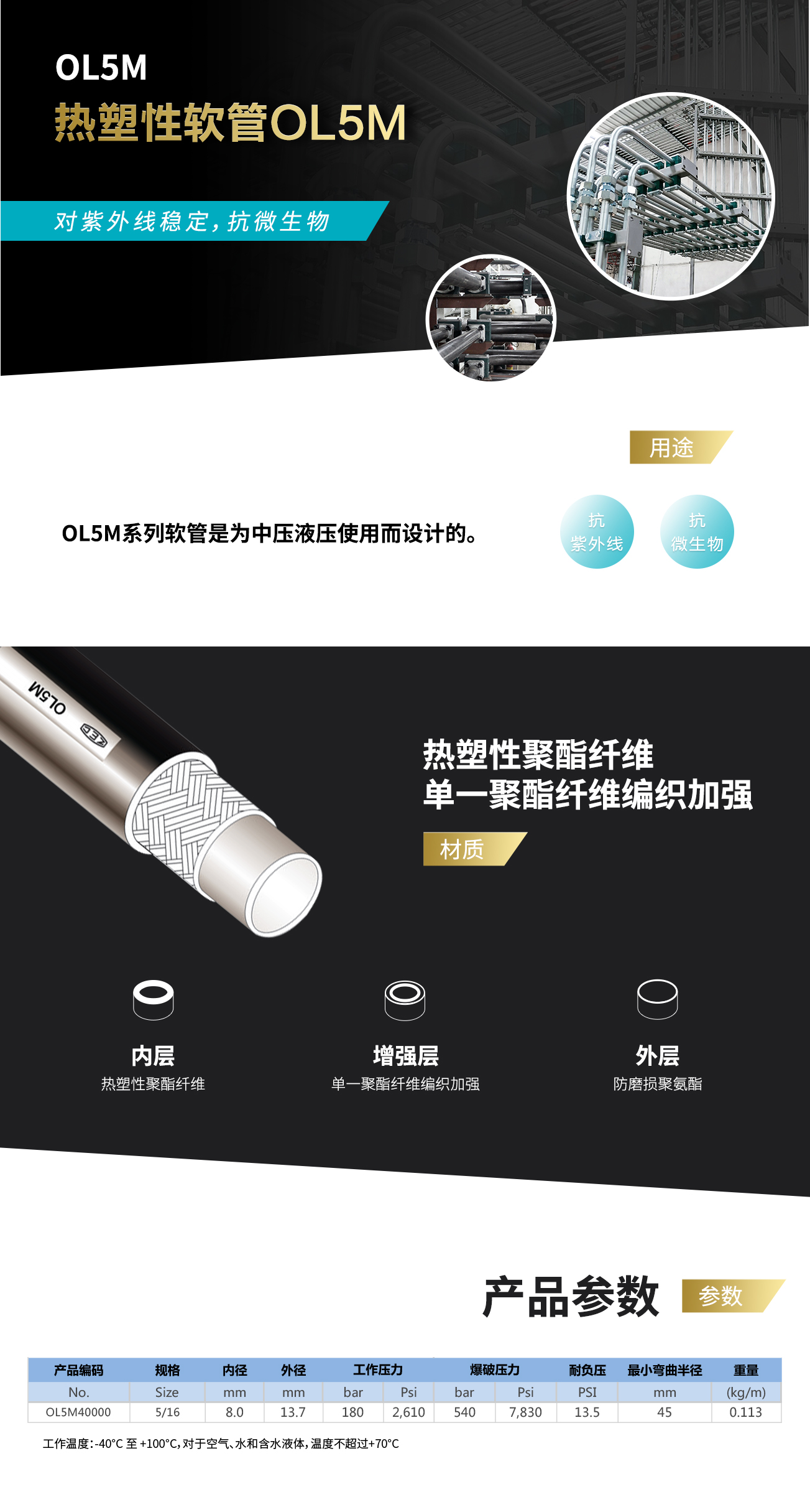 【外层】防磨损聚氨酯,对紫外线稳定,抗微生物
