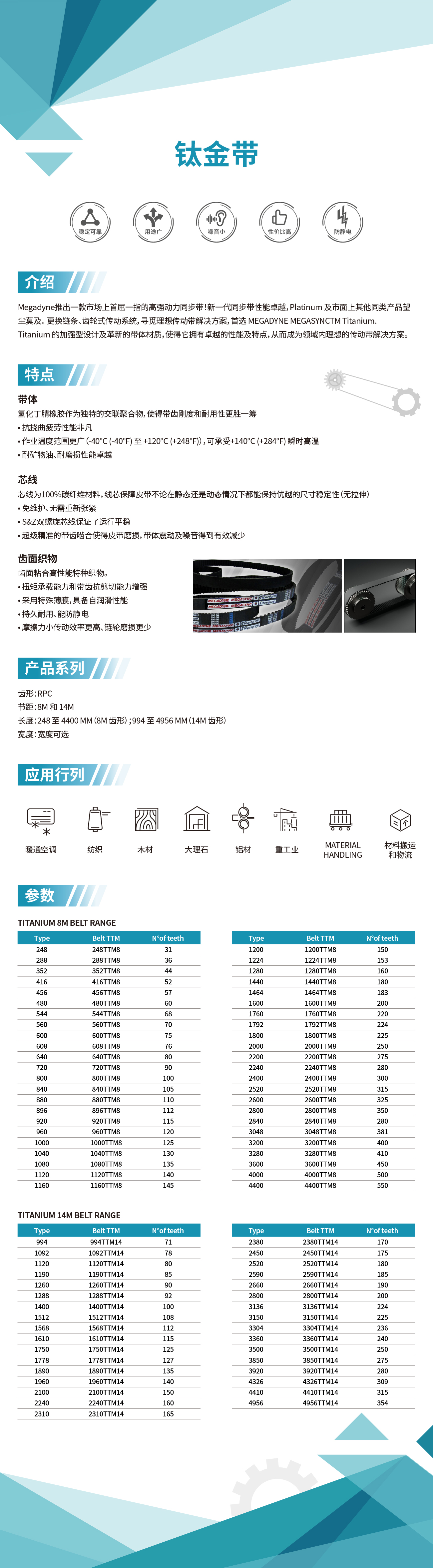 【长度】248 至 4400 MM(8M 齿形);994 至 4956 MM(14M 齿形)